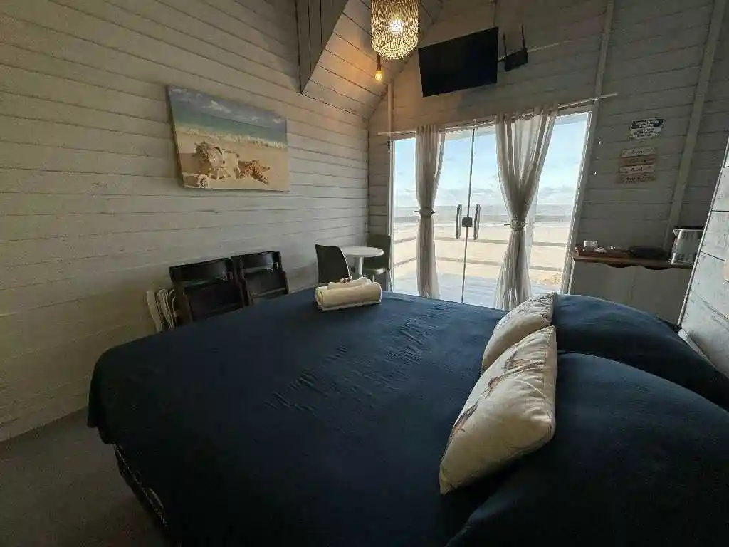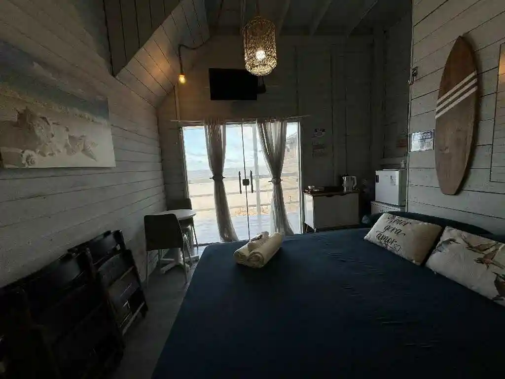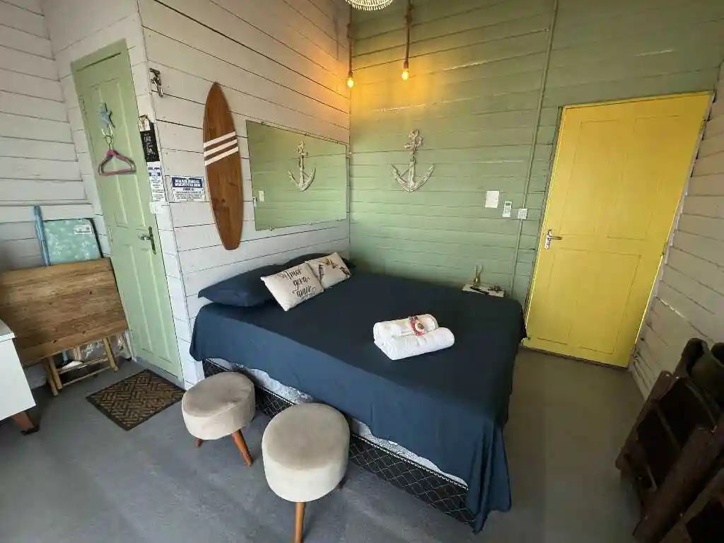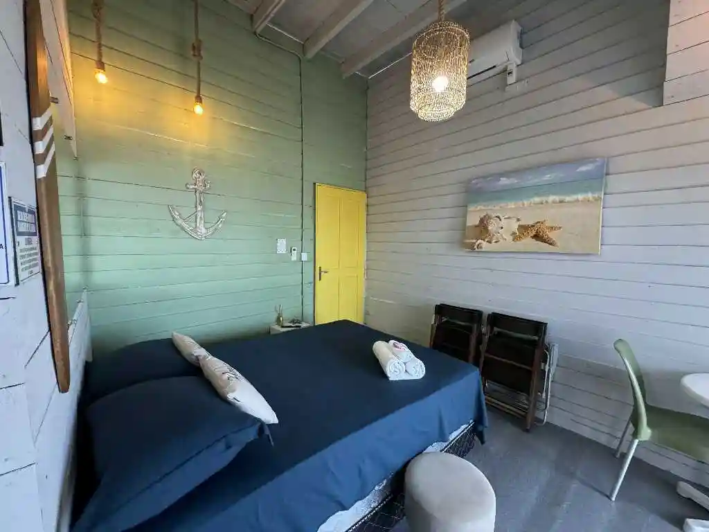 A Suíte do Mirante é a escolha perfeita para casais que buscam privacidade, conforto e um toque especial de vista para o mar. Com cama de casal, suporte para rede e colchão inflável, acomoda até 4 pessoas de forma prática e aconchegante.